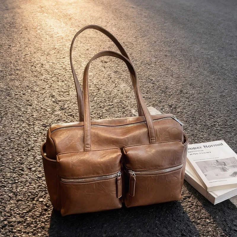 Осень-зима 2025 года, большая сумка с несколькими карманами, просторная женская сумка подмышками, шикарная сумка через плечо с верхней ручкой, эстетический день в ночное время