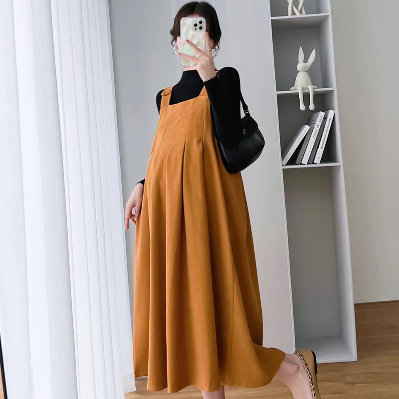 Осень-зима 9125 # модное платье-жилет для беременных Вязаные Рубашки комплекты элегантная теплая трапециевидная Одежда для беременных женщин