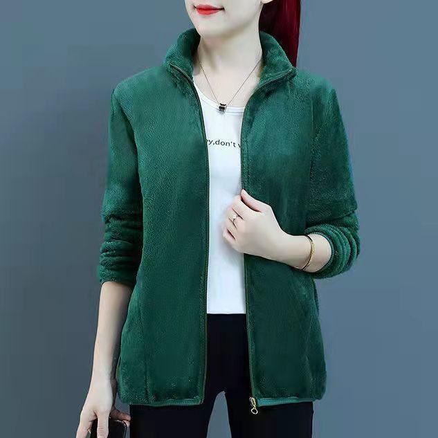 Осень-зима. Добавьте бархатное утолщение, сохраняющее тепло. Двусторонняя толстовка с капюшоном. Двустороннее шерстяное флисовое женское флисовое пальто. L зелёный