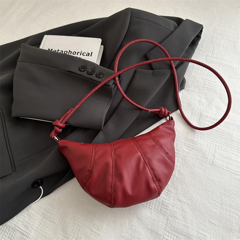 Осень 2025 новая однотонная сумка-пельмень с лоскутной отделкой, ретро-мода, зарубежный стиль, повседневная на плечо, кроссбоди, подмышечная сумка красный