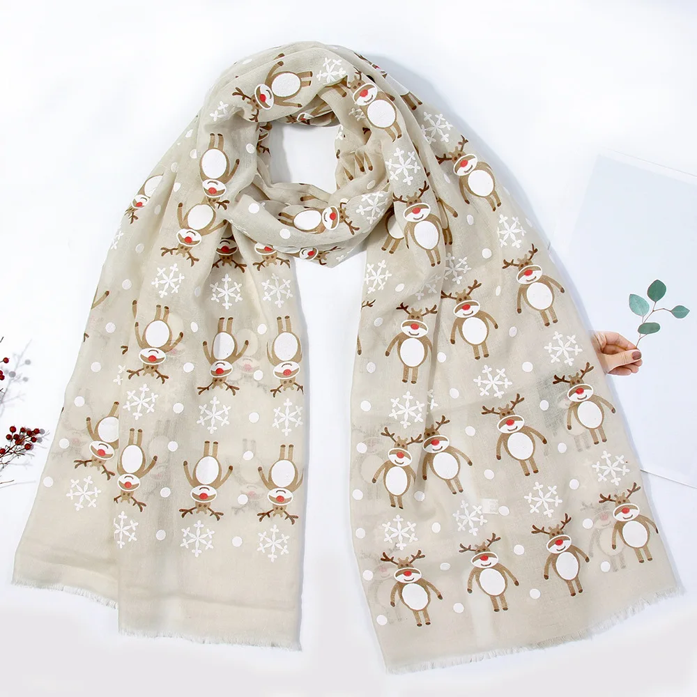 Women Christmas Voile Scarf Festivel Winter Deer Print Scarf Warm Winter Snow Shawl Women Flake Fashion Scarf