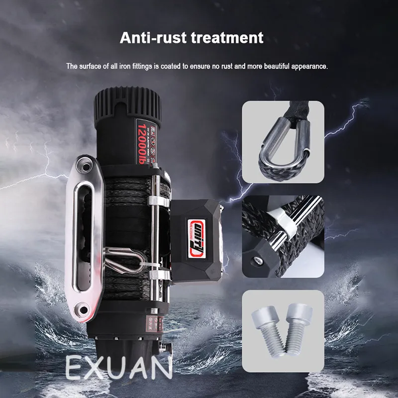 Car winch 12,000 lb car tuned 12V electric winch winch for ATV 4WD truck SUV 4x4 off-road vehicle winch self rescue