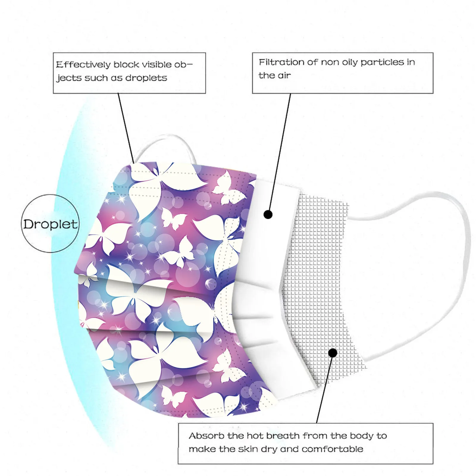 10pcs Women Man Butterfly Mask Disposable Face Masks Non Wove 3ply Ear Loop Breathable Mask Breathable Adult Mouth Masks d5