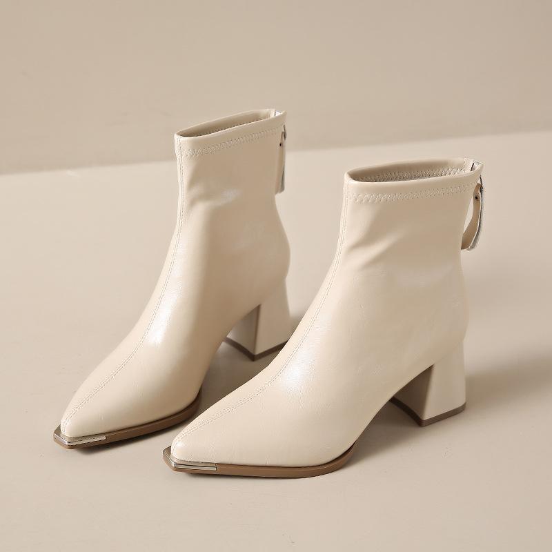 Остроносые сапоги короткие сапоги женские 2024 новые осенне-зимние женские сапоги нишевый тонкий дизайн сапог толстый каблук высокие каблуки короткие сапоги 40