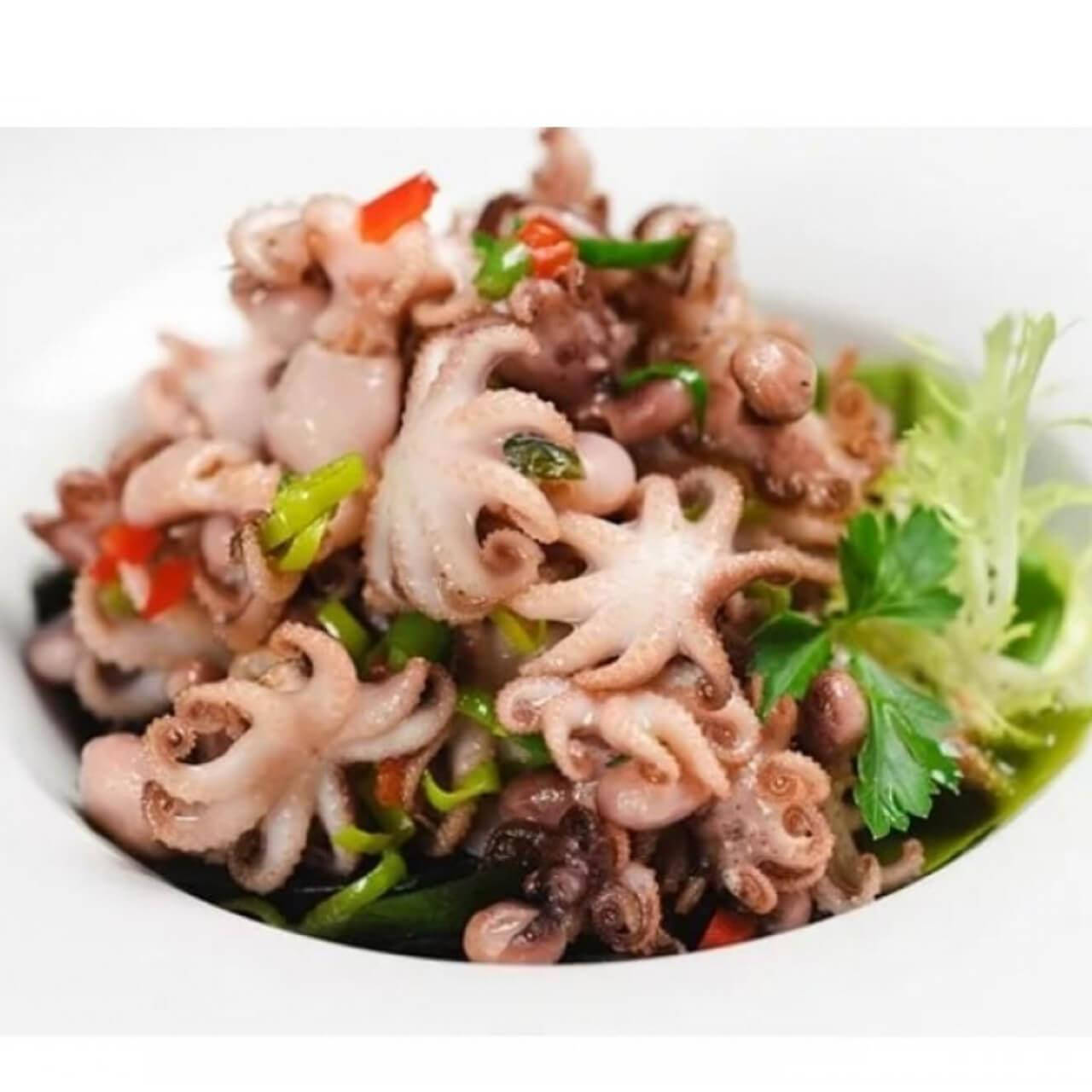 Осьминог замороженный. Мясо молодого осьминога богато различными витаминами и минералами. Он содержит калий, магний, натрий, железо, фосфор, селен, марганец, витамины группы А, В, С, Е, РР и другие полезные элементы. Цинк, который также содержится в мясе мини-осьминога, укрепляет иммунную систему и замедляет старение кожи. Также продукт выступает источником белка с высокой биологической активностью. Считается, что регулярное употребление этих моллюсков в пищу может предотвратить развитие раковых опухолей.