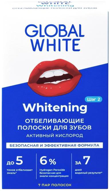 Отбеливающие полоски Global White Активный кислород 7 дней