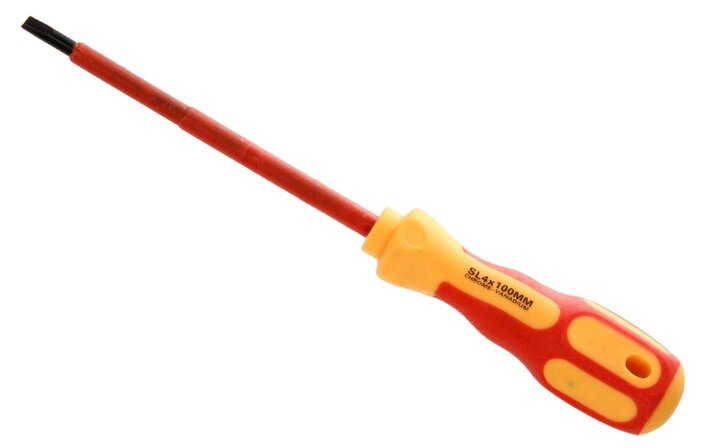 Отвертка плоская SL4x100мм, CrV, магнитный наконечник, диэлектрическая, REXANT Электрика (12-4712)