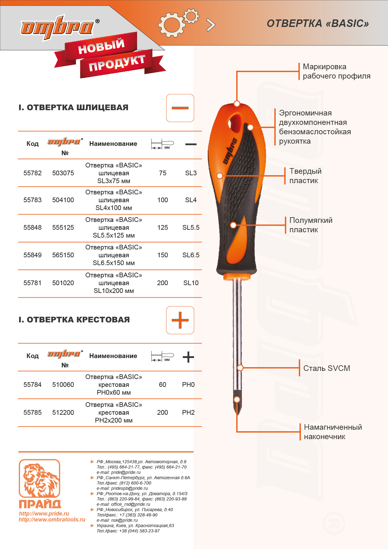 Отвертка плоская SL8x150мм, сталь, магнитный наконечник, Ombra Basic (508150)