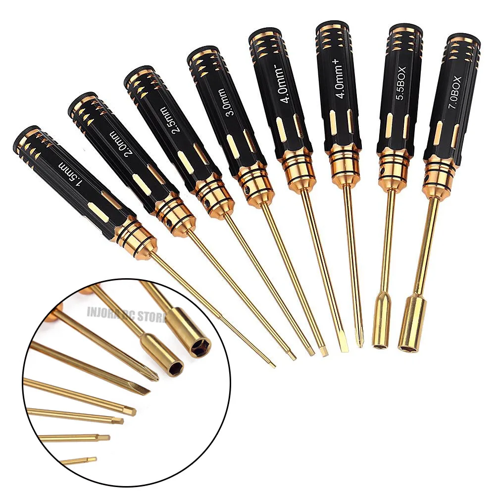 Отвертка с шестигранной гайкой, 8 шт./компл., черный и золотой гаечный ключ, торцевой ключ для радиоуправляемой модели, автомобиля, лодки, вертолета