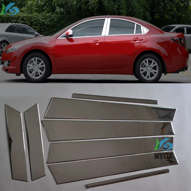 Отделка окон из нержавеющей стали, центральные столбы B + C, столбы, 8 шт., отделка для Mazda 6 M6, 8 шт., 2009, 2010, 2011, 2012