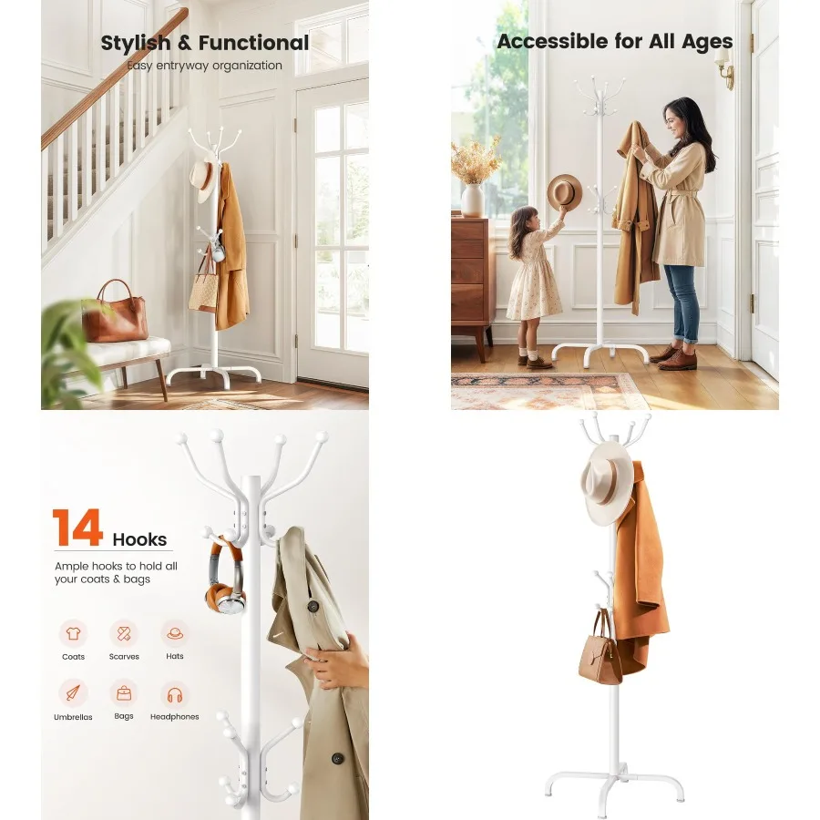 Отдельно стоящая вешалка с 14-крючками, предназначенная для прихожей, спальни и офиса, прочная металлическая вешалка для одежды и шляп