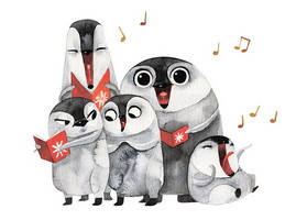 Милашнейшие пингвины поют рождественские гимны и создают праздничное настроение. С гарантией. Художница Катя Бранчукова.