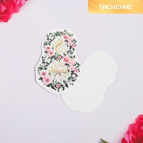 Открытка поздравительная «8 Марта!» розовые розы и белый фон, тиснение, 8 × 9 см