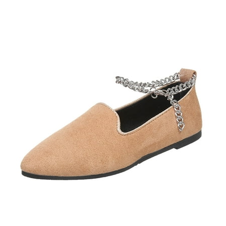 Cathalem Ladies Fashion Solid Color Suede Pointed Ankle Buckle Shallow Flat Casual Shoes Khaki 38