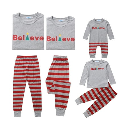 Fanvereka Family Matching Christmas Santa Pjs Striped Sleepwear Adult Kid Baby Homewear Set