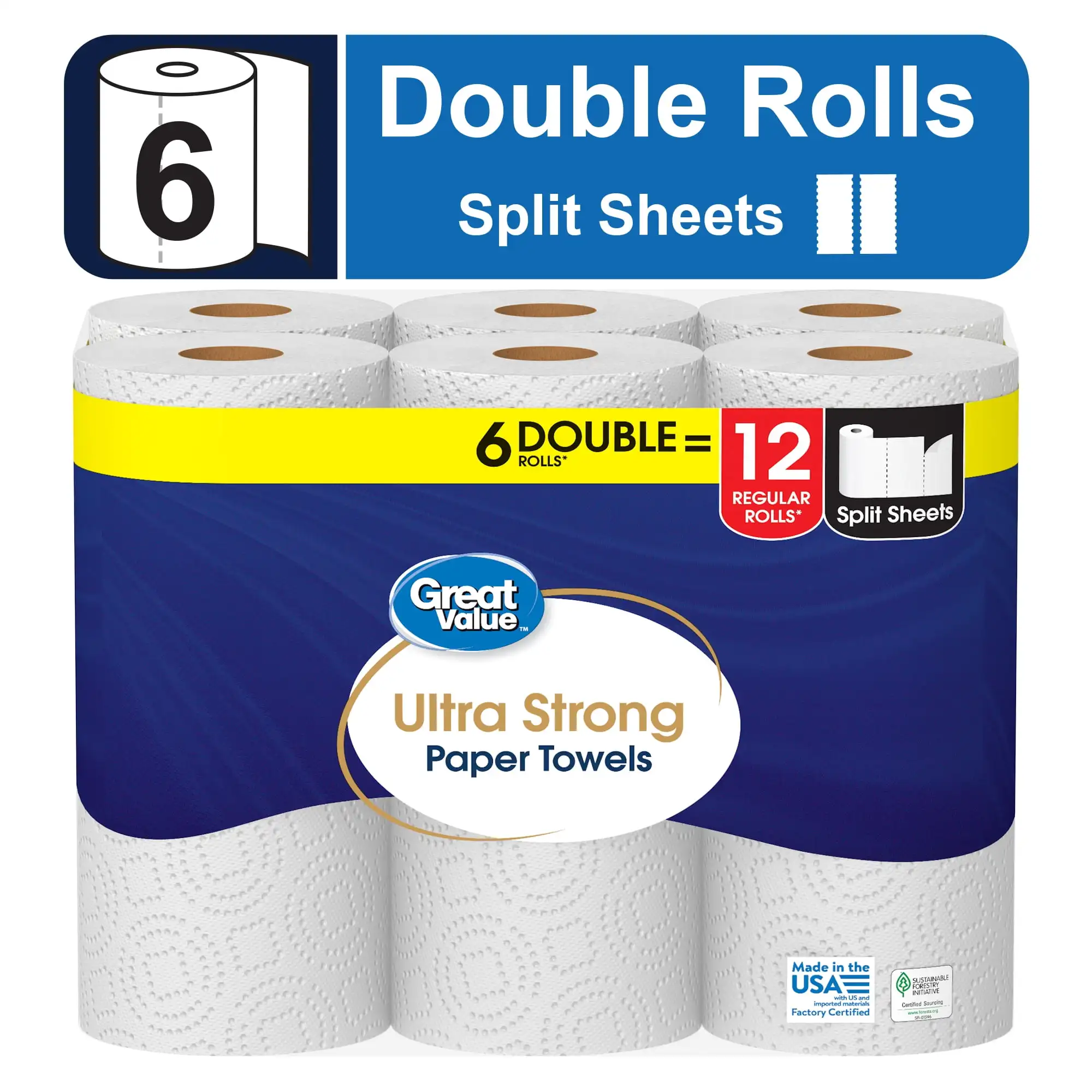 Отличное качество, сверхпрочные бумажные полотенца, 6 двойных рулонов