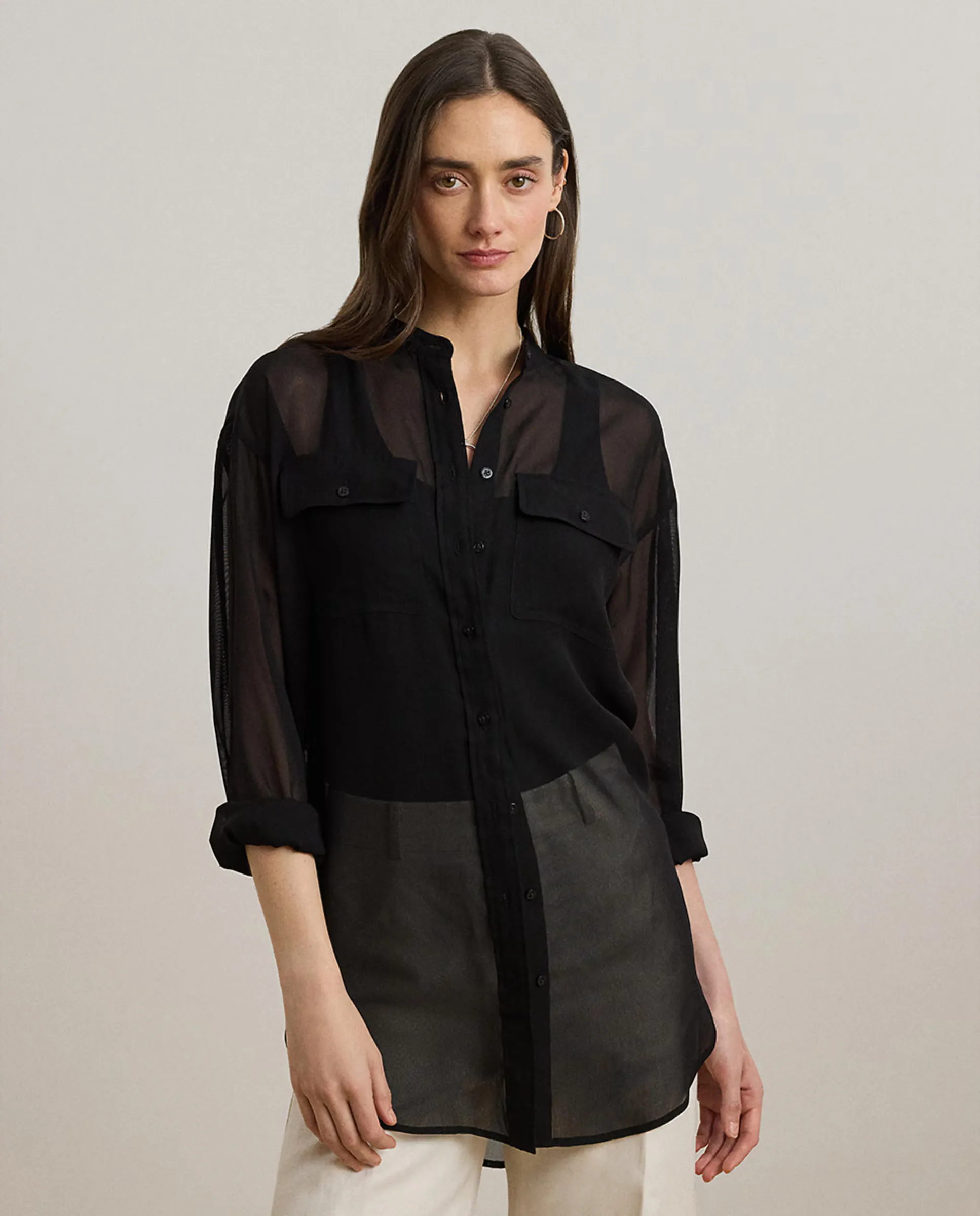 Женская рубашка с длинным рукавом и свободным кроем Lauren Ralph Lauren, черный