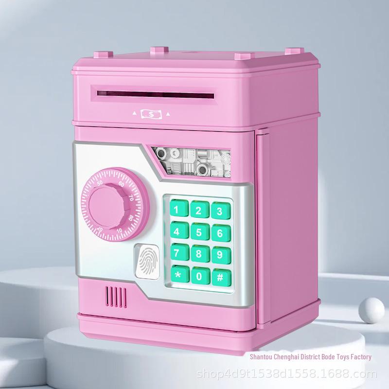 Отпечаток пальца Пароль Банкомат Копилка: Творческий детский подарок для пополнения и снятия средств 13.5*12.3*19 cm розовый