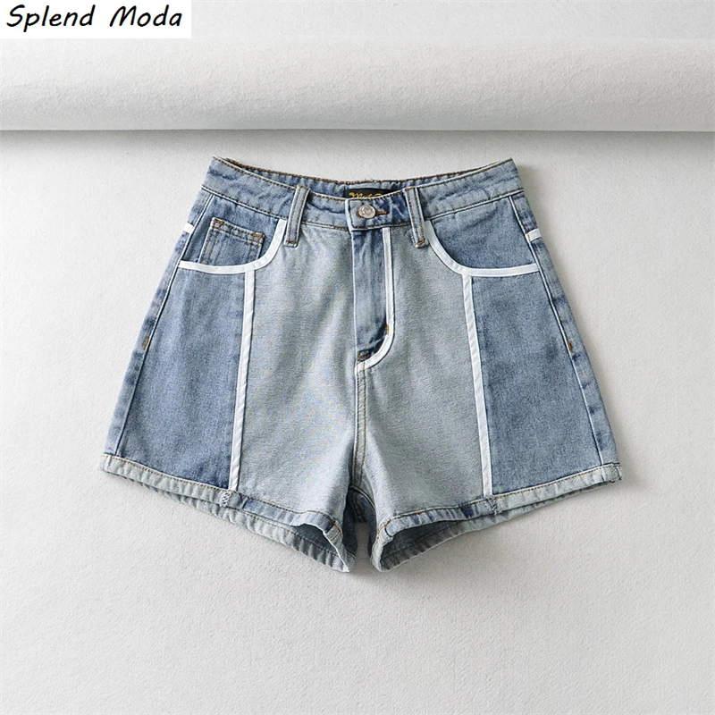 Splend Moda 2021 Summer High Waist New Sexy Women Denim Shorts Fashion Stitching Contrast Color Loose Casual Shorts Chic
