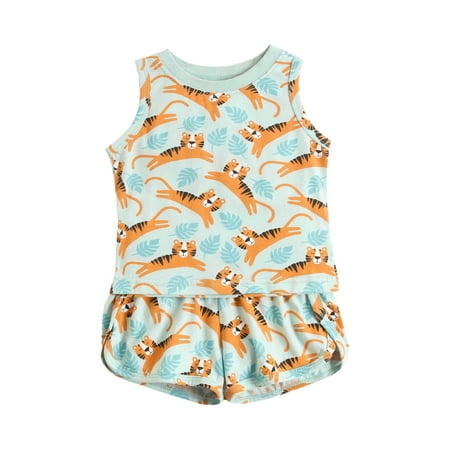 Baby Girls Outfits Winter Outfits Teens Toddler Girls Short Sleeve Animal Tiger Print T Shirt Pullover Tops Checkered Shorts Outfits