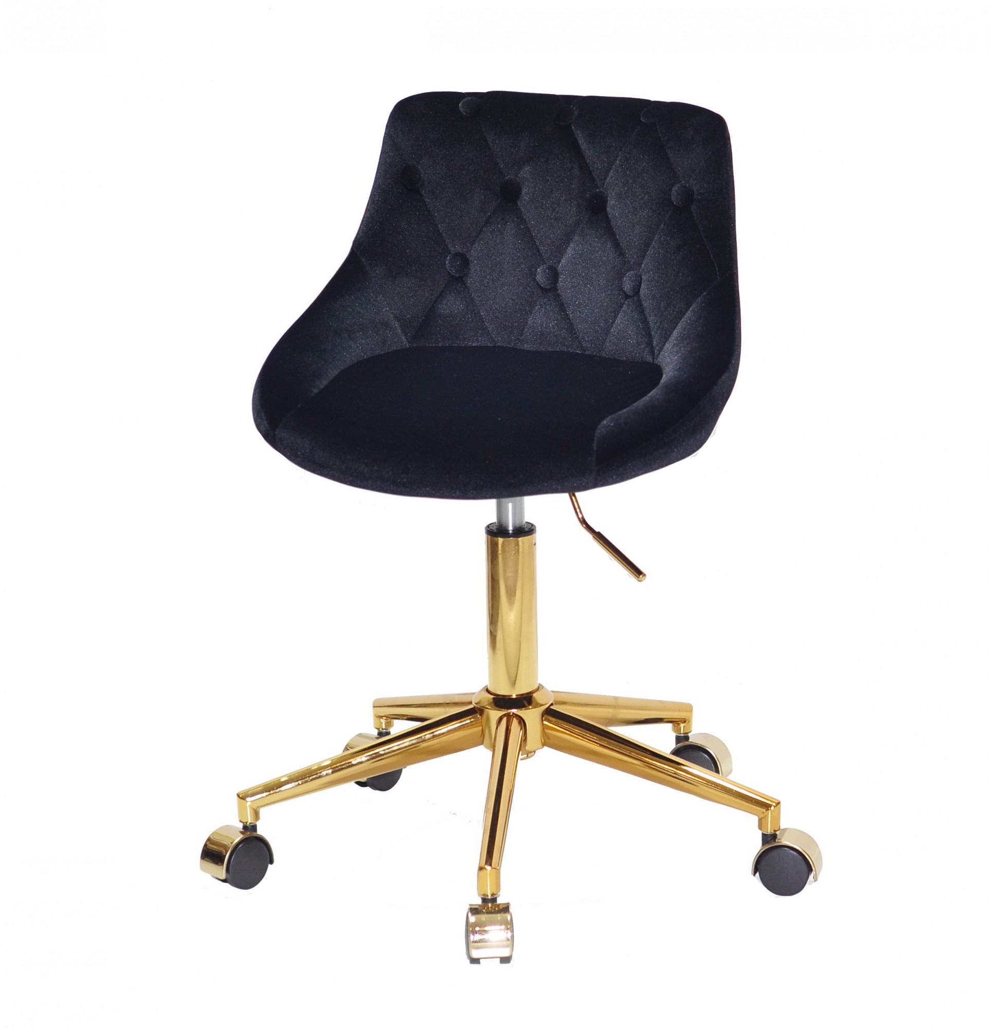 [html]Офисный стул на регулируемой по высоте опоре FORO + BUTTON – это современная дизайнерская модель, которая выгодно будет смотреться как на Вашей кухне так и в гостиной, еще ее можно использовать в интерьерах кафе, ресторанов, отелях и в других общественных помещенияхСиденье - мягкое. Ножка - позолоченная, регулируемая по высоте опора на колесах.Особенности и преимущества: Современный дизайн;Спинка и сидение мягкиеНожка регулируется по высоте;Конструкция выдерживает нагрузку до 120 кг.Гарантия - 12 месяцевРазмеры: Ширина - 46 смГлубина - 35.5 смВысота спинки - 26.5 смВысота посадки минимальная - 44 смВысота посадки максимальная - 58 см Высота стула минимальная - 69 смВысота стула максимальная - 84 смМатериал основы: бархатЦвет основы: черныйМатериал ножки: металл Цвет ножки: золотоСтиль: модерн[/html]