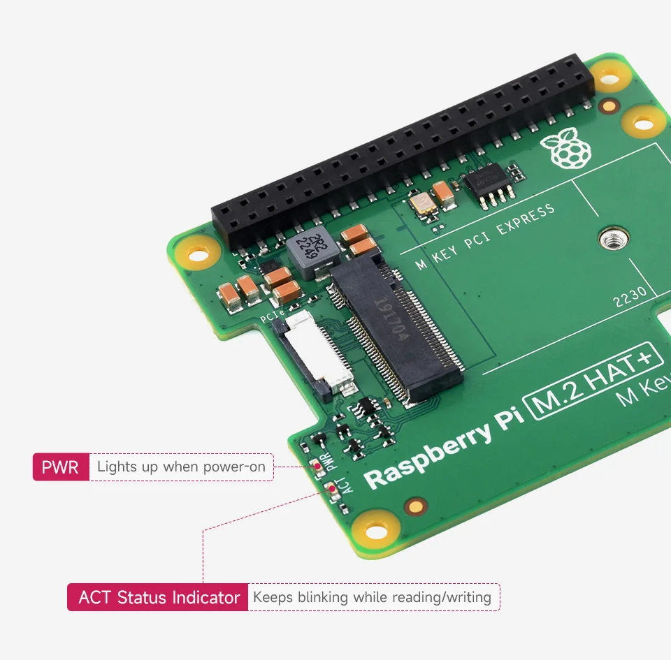 Официальный Raspberry Pi PCIe до M.2 HAT, разработан для Raspberry Pi 5, HAT + стандарт, поддерживает протокол NVMe M.2 твердотельный накопитель