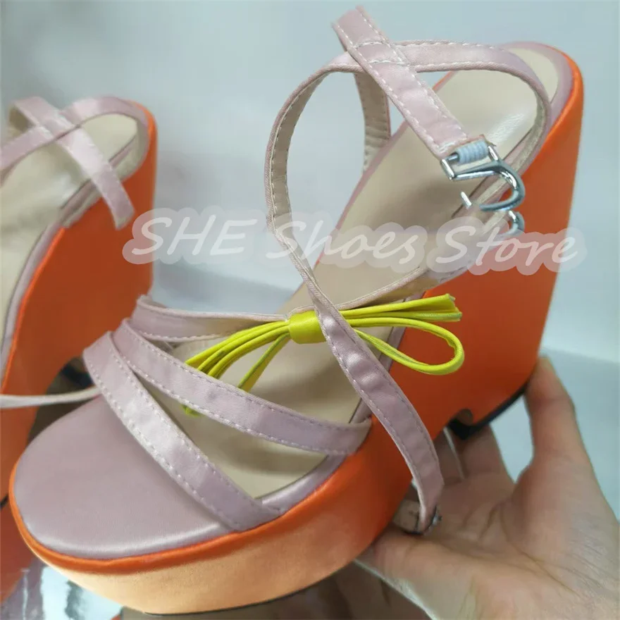Mixed Color Butterfly Knot Narrow Band Women Sandals Chunky Platform Wedges Ankle Strap Pumps Ladies Catwalk High Heel Shoes