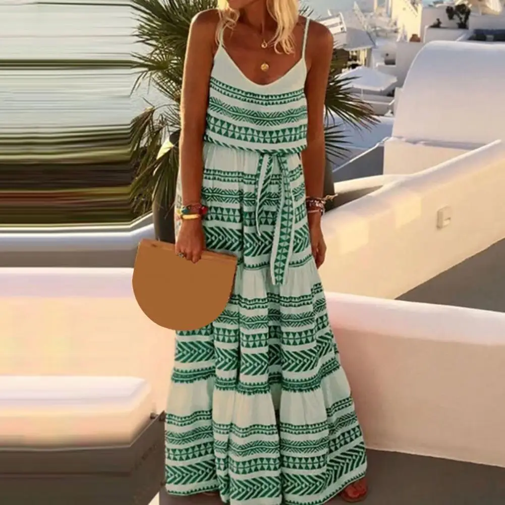 2021 Tie-Dye Print Long Dress Women Summer Sleeveless Sexy V-Neck Backless indie Dress Elegant Irregular Lace-Up Maxi Dresses