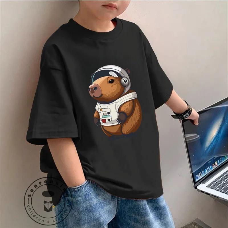 Очаровательная детская модная футболка с изображением капибары, идеальная летняя одежда, мягкая ткань, идеальный подарок для детей, универсальная базовая рубашка 3T(100cm)