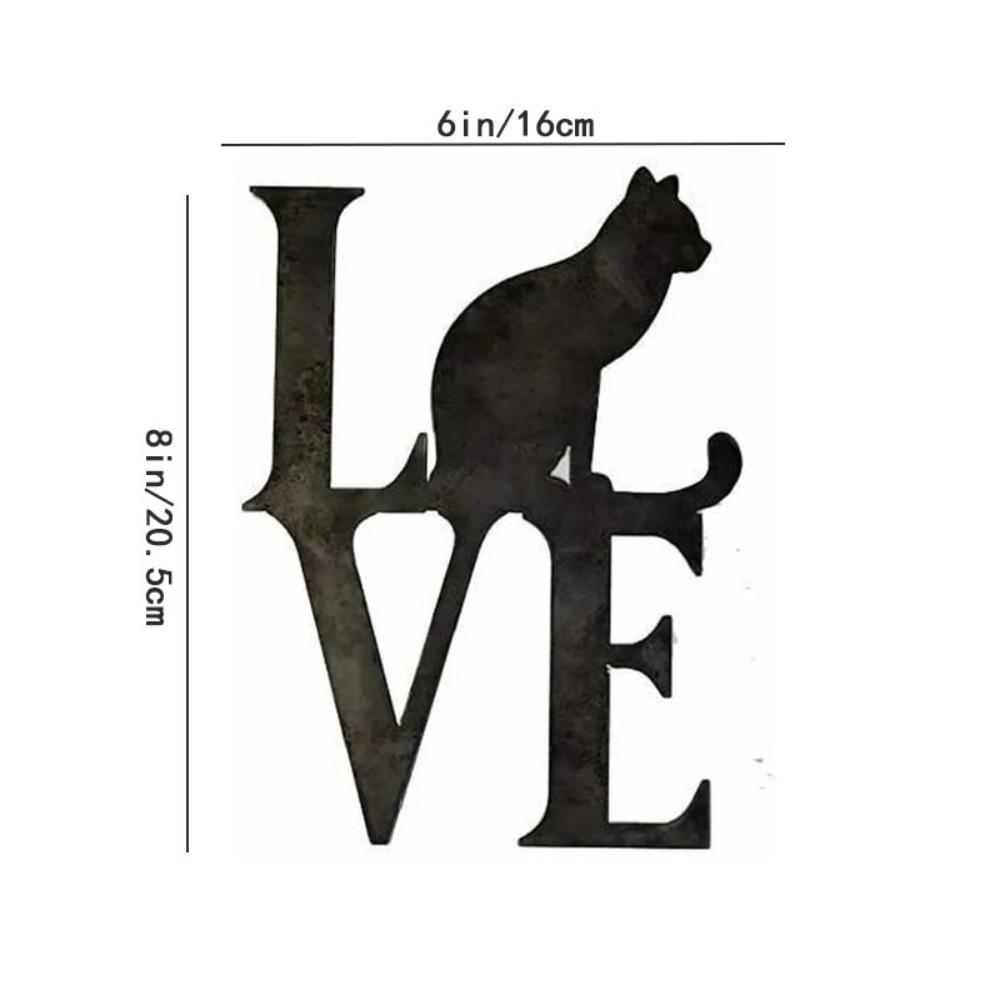 Очаровательное слово «Любовь» с изображением кошки на металлической стене – силуэт из железа, современный декор стен и предметов интерьера, стильное подвесное искусство из металла чёрный