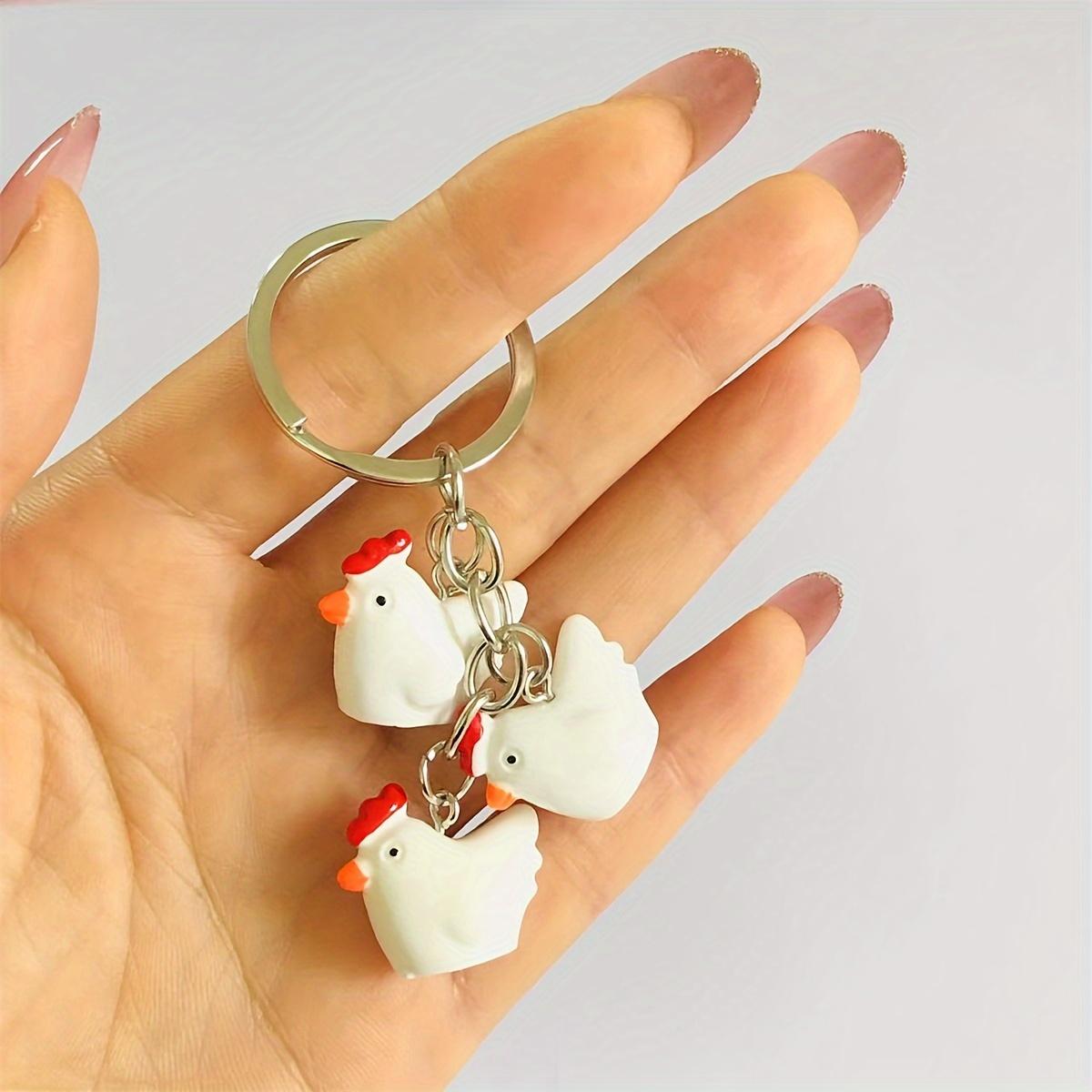 Очаровательные брелоки в виде белых цыплят: 3 полимерных цыпленка-шарма на металлическом брелоке - Идеально для Дня святого Валентина или на любое время! белый