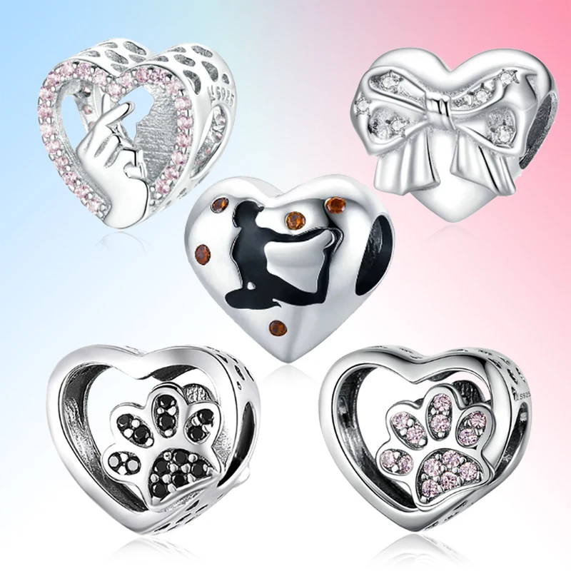 Очаровательные бусы 925 пробы серебра в форме сердца коготь ювелирные браслеты и кулоны