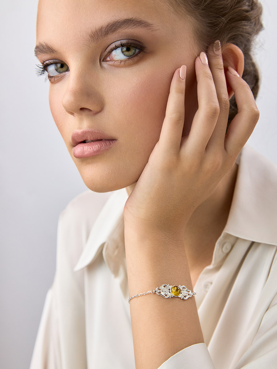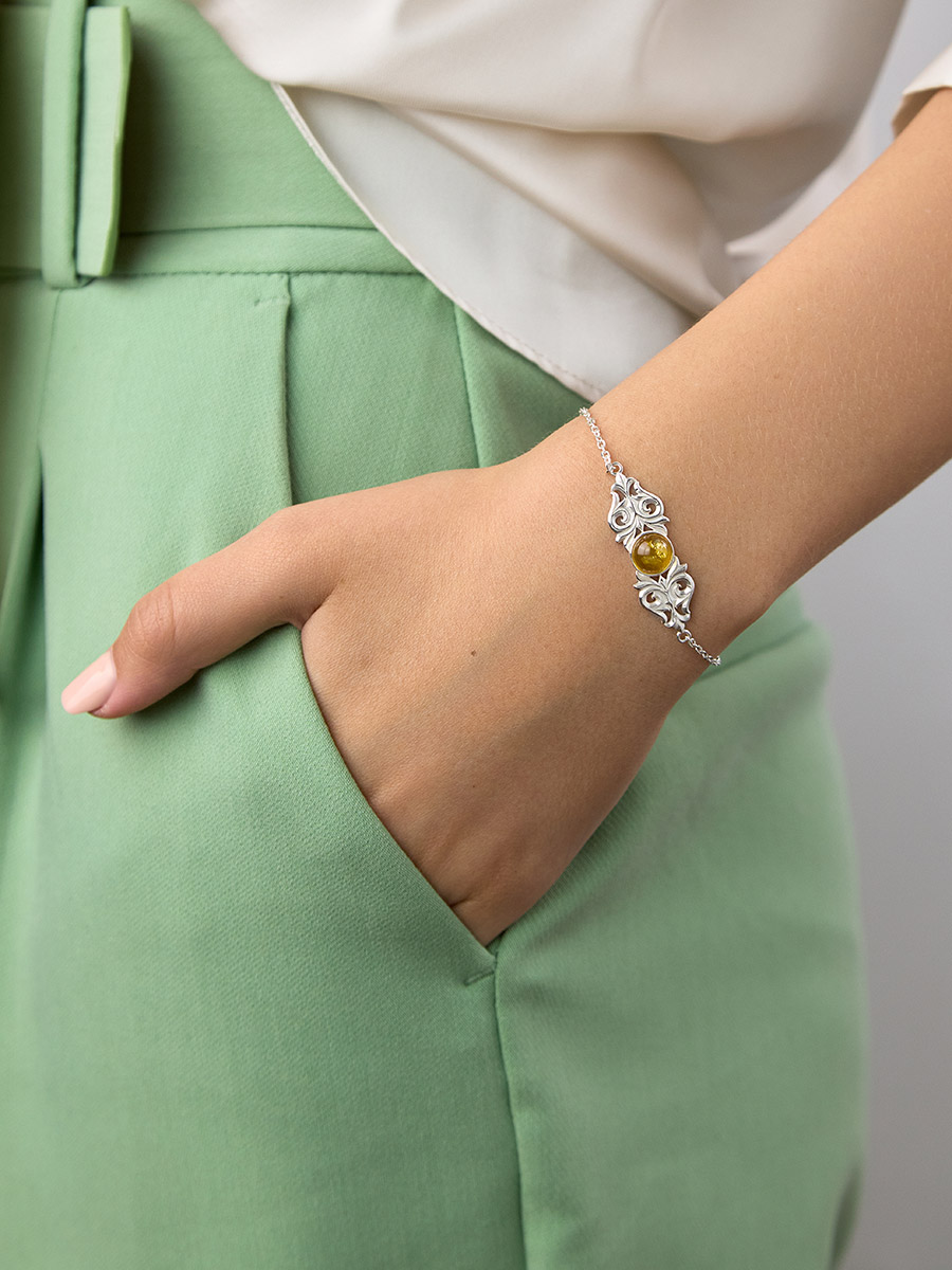 Очаровательный браслет из натурального лимонного янтаря «Кордова», Лимонный