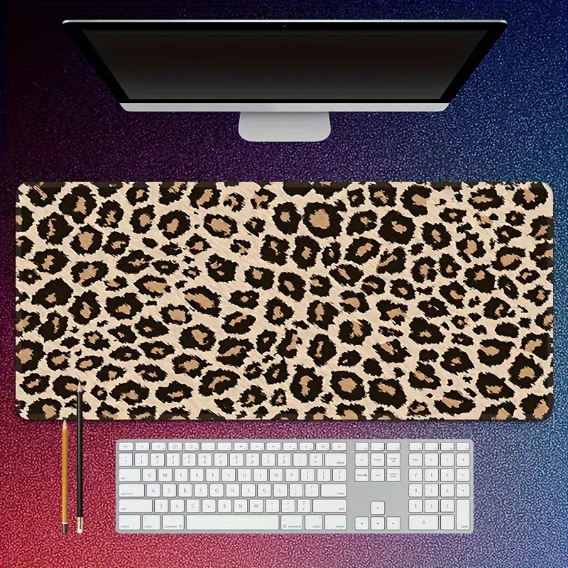 Очень большой коврик для мыши с леопардовым принтом, нескользящая резиновая основа с прошитыми краями, сверхгладкая поверхность для домашнего офиса, ПК, учебы, игр
