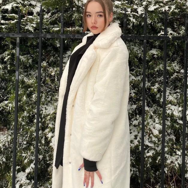 Очень длинное женское пальто из искусственного кроличьего меха с поясом - Утепленная, теплая, плюшевая зимняя куртка M