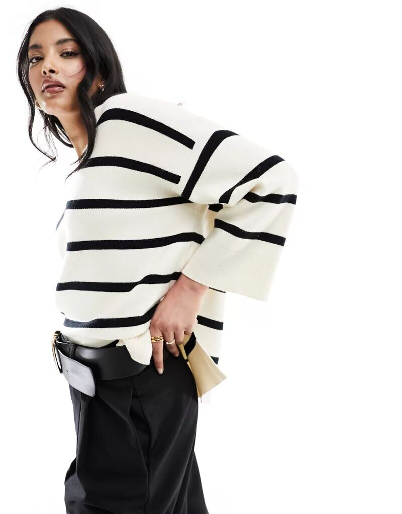 Очень мягкий свитер Vero Moda в черно-белую полоску с V-образным вырезом