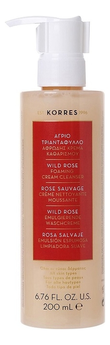 Korres очищающая крем-пенка для лица с экстрактом дикой розы wild rose foaming cream cleanser 200мл купить, цена на Randewoo.ru