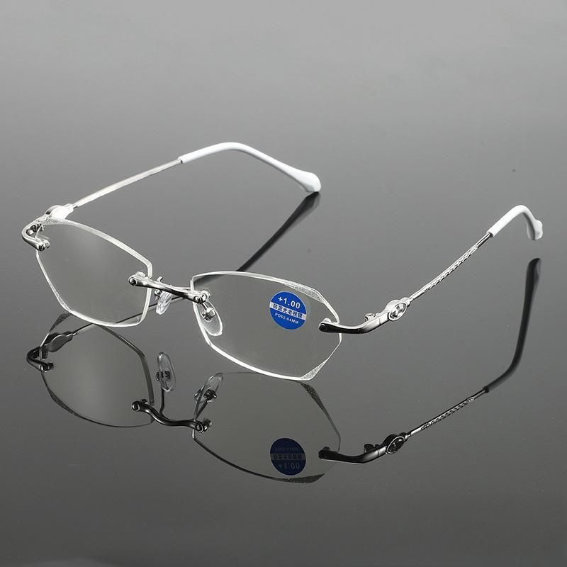 Очки для чтения с синей подсветкой и металлической отделкой без оправы, инкрустированные бриллиантами, — это модные, элегантные, простые и легкие женские очки для чтения. 400