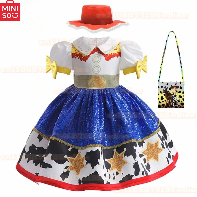 Purim Toy Story 4 Jessie Cosplay Carnival Princess Dress Short sleeve Girls Costume With wig hat For Halloween Birthday Party