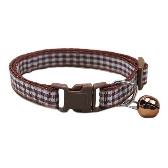 Ошейник для домашних животных с клетчатым узором, несколько цветов, яркие пряжки-колокольчики, обычный ошейник для маленьких собак и кошек коричневый