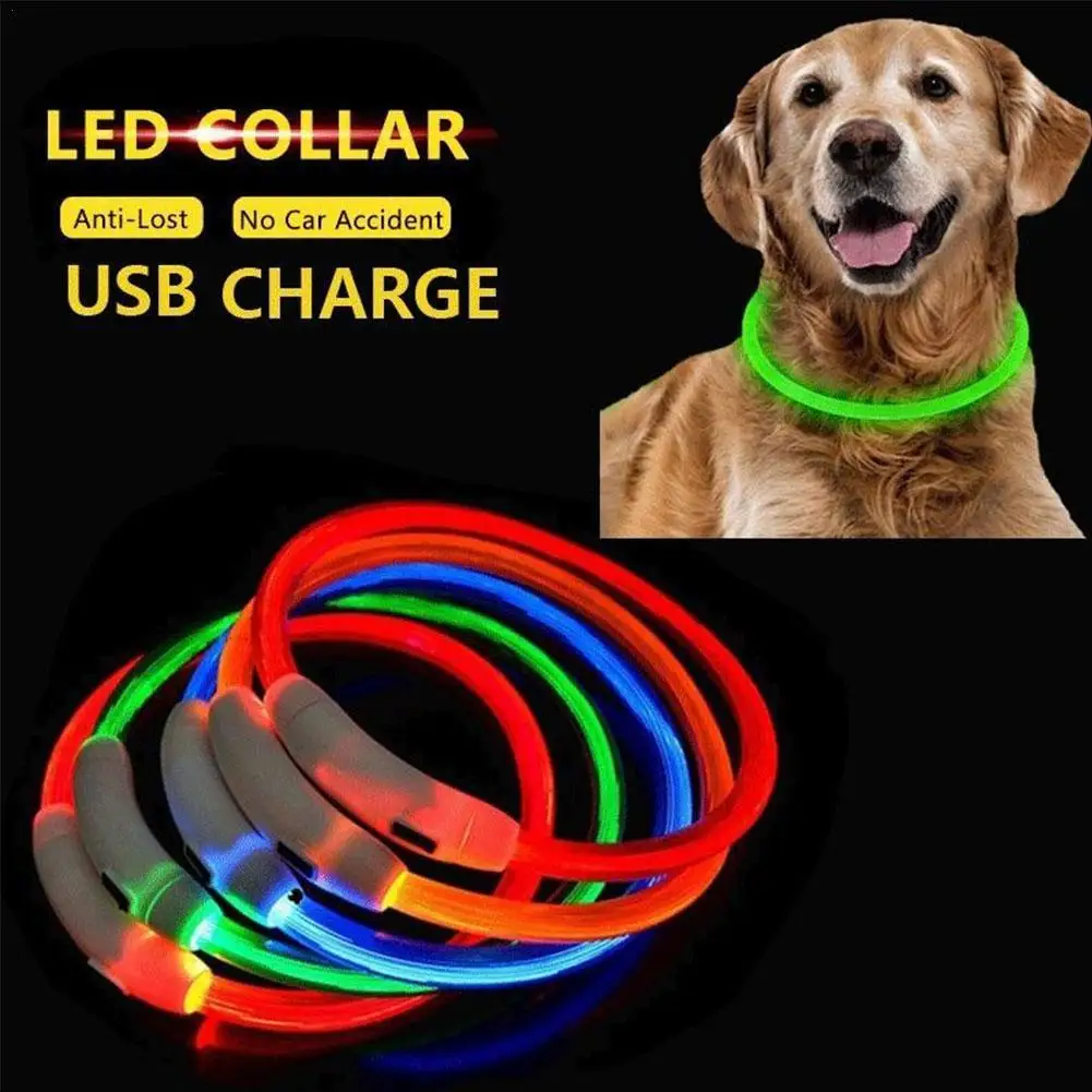 Ошейник для домашних питомцев, светодиодный перезаряжаемый, защита от потери, с USB светильник кой, для прогулок и прогулок