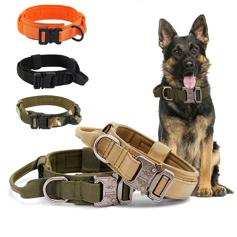 Ошейник для собак, тактический военный Регулируемый прочный нейлоновый ошейник для тренировок на открытом воздухе среднего и большого раз...