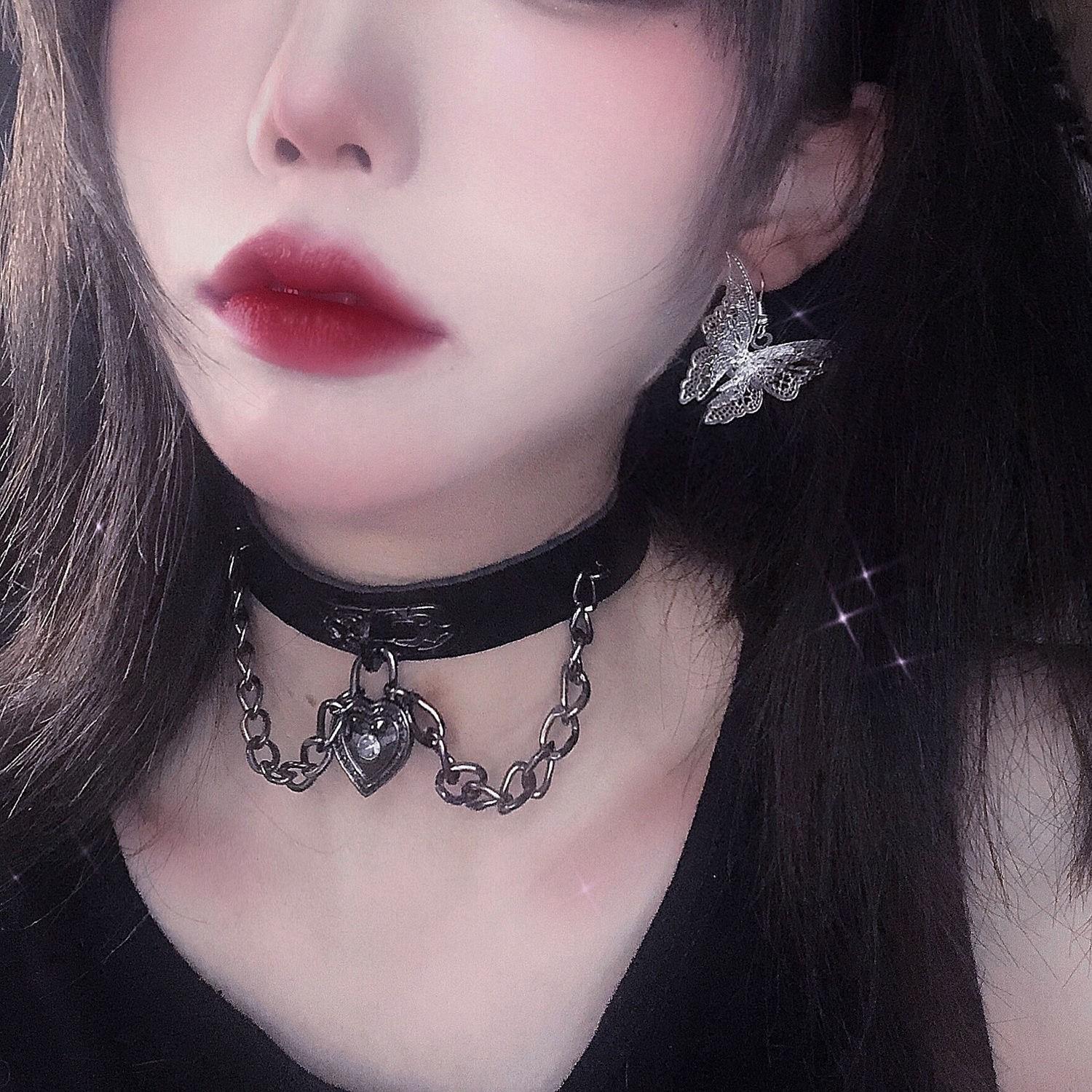 Ошейник-чокер, темное ожерелье с галстуком, женское черное ожерелье с цепочкой на ключицу, панк-готическая цепочка с любовью