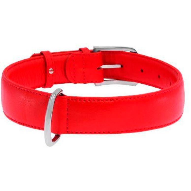 Ошейник WAUDOG Glamour Ш 35 мм, Дл 46-60 см Red (33223), Нашийник шкір. Glamour з QR пасп., без прикрас, Ш