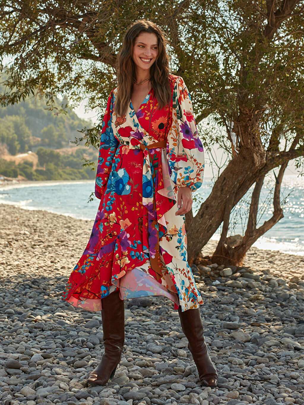ПЛАТЬЕ OOPSCOOL X LCWAIKIKI С ПОЯСОМ С ЦВЕТОЧНЫМ УЗОРОМ