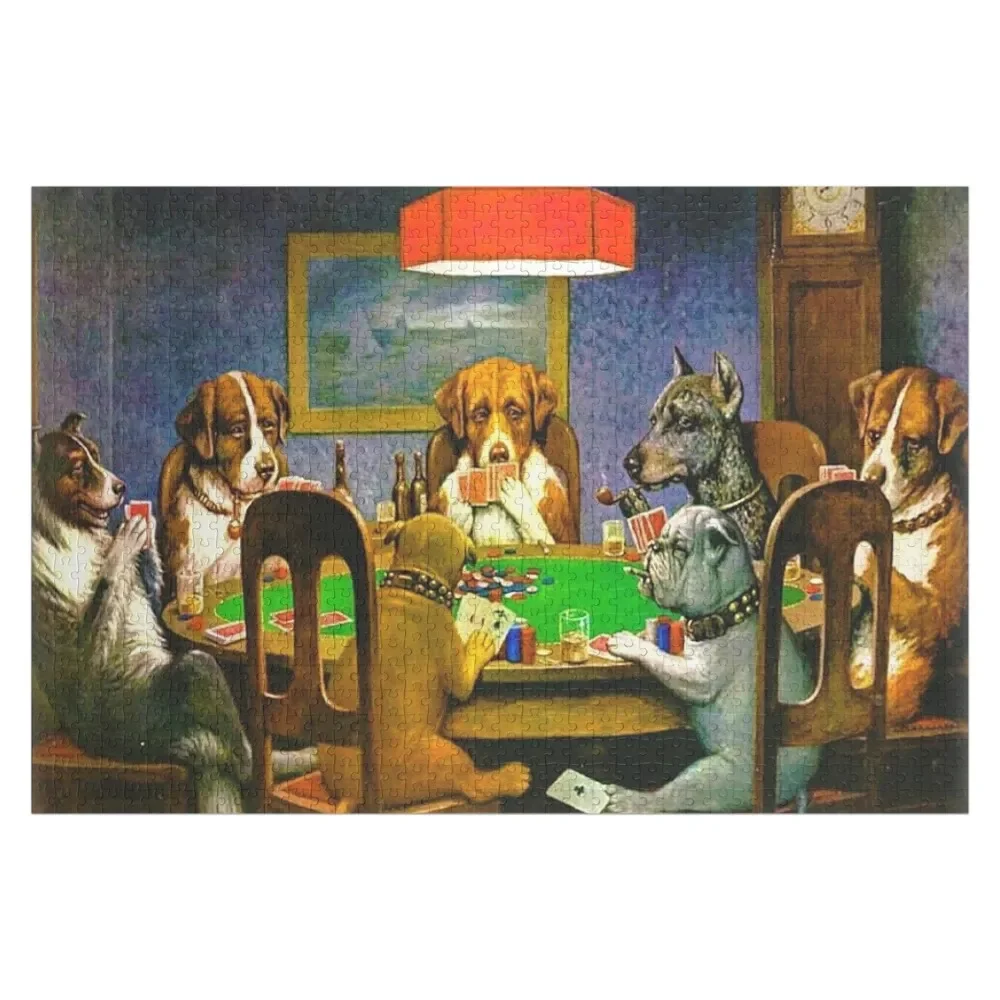 Пазл «волшебные собаки» на покерной ночной вечеринке, пазл для детей на заказ, деревянный пазл с именем