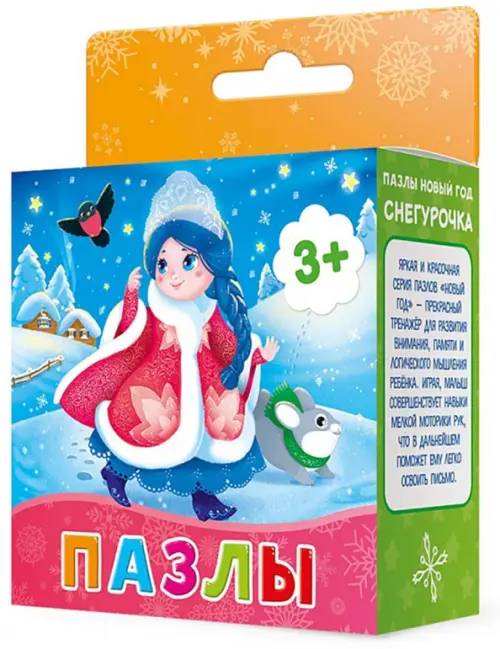 Яркая и красочная серия пазлов «Новый год» — прекрасный тренажёр для развития внимания, памяти и логического мышления ребёнка. Играя, малыш совершенствует навыки мелкой моторики рук, что в дальнейшем поможет ему легко освоить письмо.