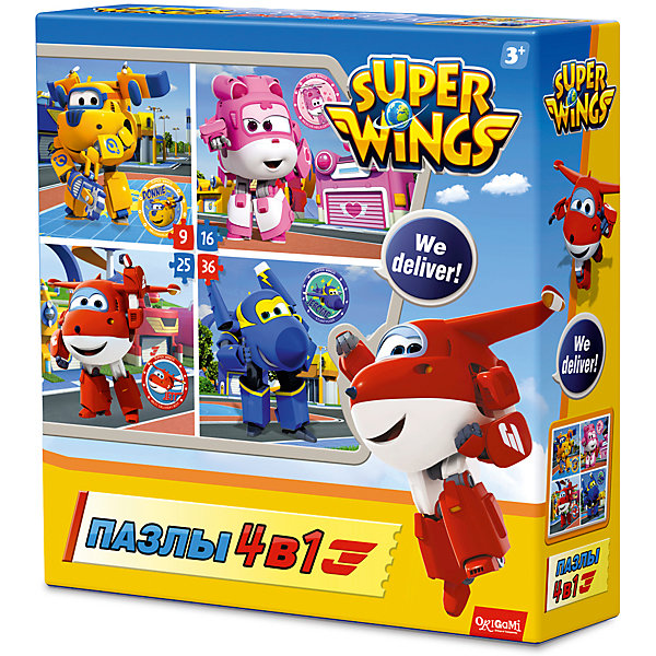 Пазл 4 в 1 Origami "Супер Крылья" Любимые герои, 9/16/24/36 элементов