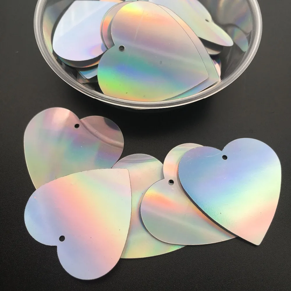 Пайетки плоские в форме сердца, 30 г, 110 шт., 33 мм