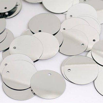 Пайетки (блестки) серебро. Диаметр 30мм. Имеют одно отверстие для пришивания.